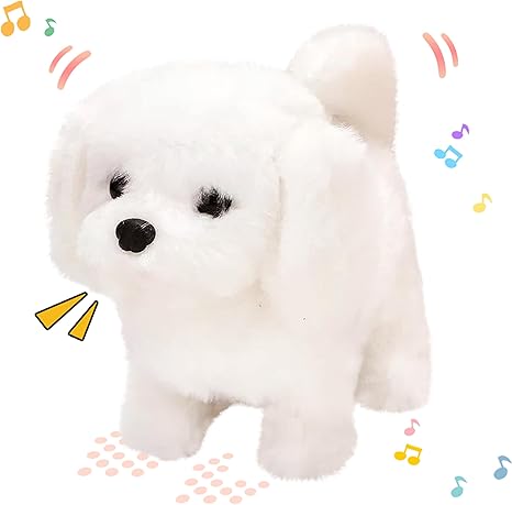 You turn the corner and—there it is. A small, fluffy white pup—not too big, not too small—bounding along the hardwood floor with your toddler trailing behind. Their hands are clapping. Their eyes wide. And the pup? It’s wagging. Barking. Nodding like it’s genuinely enjoying the moment.